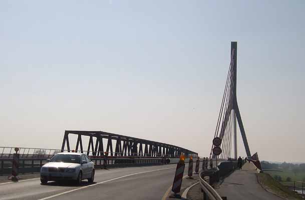 Sie erreichen auf der B 58 die Weseler Rheinbrücke.